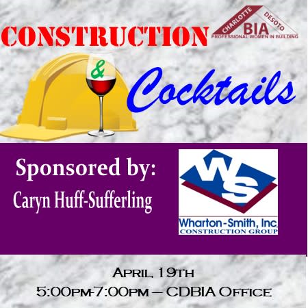 You are invited to the next meeting of the CDBIA PWB (Professional Women in Building) This meeting is sponsored by CDBIA President Caryn, Wharton-Smith, Inc. We will be discussing: This event is FREE to all members of the CDBIA PWB. For CDBIA Members and Guests the price is $10. Food and beverages will be available with your registration. Please register by 4/16 so we can ensure a head count to purchase food and drinks. Thank you!